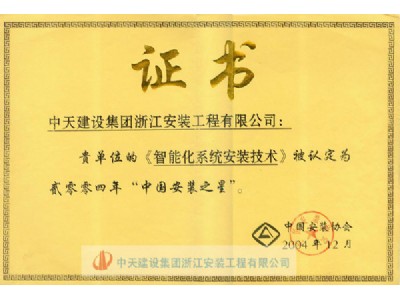“智能化系统安装技术”荣获2004年度“中国安装之星”