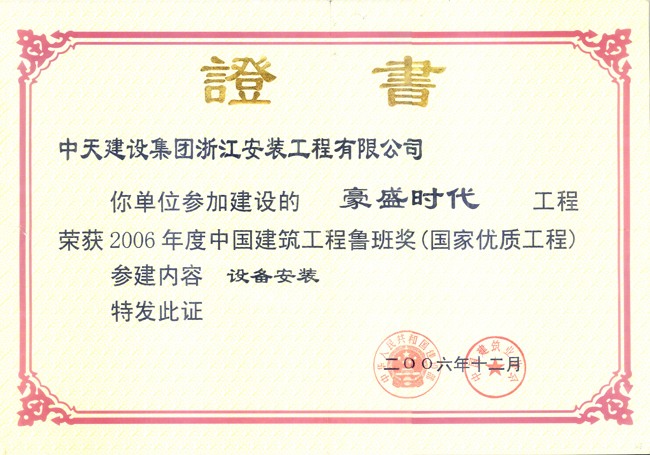 西安豪盛时代工程 2006年度中国建设工程鲁班奖
