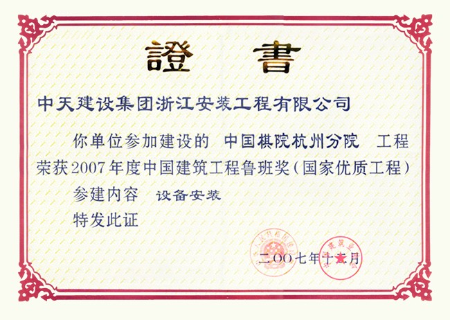 中国棋院杭州分院 2007年度中国建设工程鲁班奖