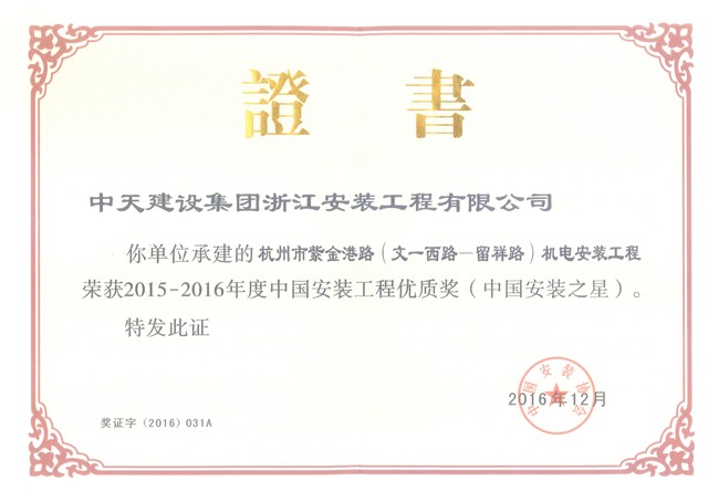 中国安装工程优质奖项目12-杭州紫金港路项目